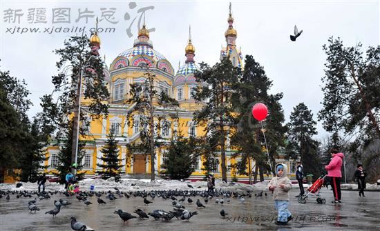 2014年3月16日,阿拉木图当地居民在“二八”烈士公园休闲娱乐。