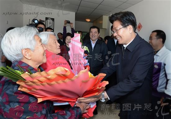 2013年10月13日,是我国第一个全国“老年节”,也是我国传统节日重阳节。中共中央政治局委员、自治区党委书记张春贤来到乌鲁木齐市养老福利院,看望和慰问居住在这里的各民族老人。