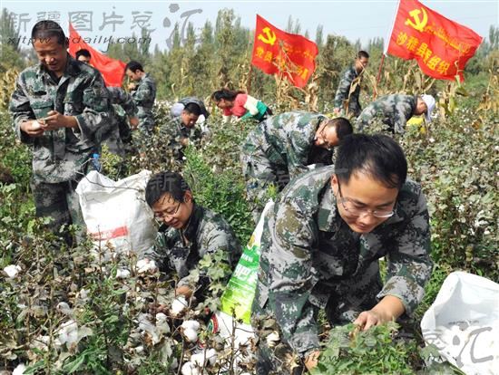 2013年10月4日,新疆阿克苏地区沙雅县组工干部帮助该县托依堡勒迪镇胜利村贫困群众摘棉花。国庆假期期间,该县各级党员干部深入乡村一线,采取多种方式参与秋收秋播。据悉,各级党员干部参与人数达万余人,为各族群众捡棉花320余吨,采摘红枣26吨。