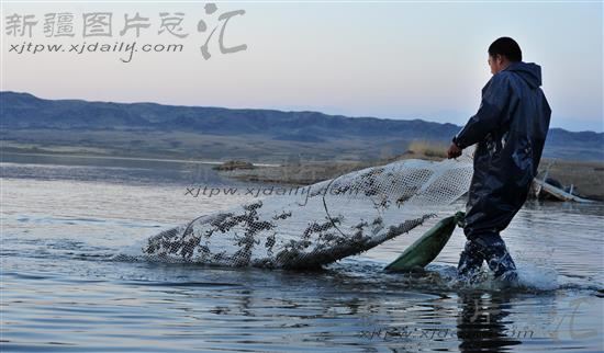 2013年11月1日,河蟹养殖户杨超在查看河蟹的长势。2011年,杨超在盘锦市援疆工作队的帮助下,和布克赛尔蒙古自治县布林水库试养螃蟹,当年投放的1吨蟹苗为其带来了近30万元的收入。2012年,杨超进一步扩大养殖规模,并为当地居民提供技术支持,带动大家从事河蟹养殖。