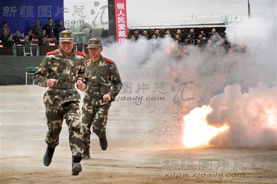 2014年4月15日,新疆公安边防部队的战士们正在进行“火线穿越”。