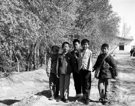 1990年,荣获全国德育先进集体的农七师125团第二中学小学部学生徐德(右二),从小失去双臂,同班同学从学习和生活上照顾徐德同学。徐德当上了三好学生,助人为乐的同学们分别被评为学雷锋、学赖宁的先进个人。