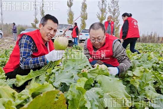 当日,乌鲁木齐市天山区园林管理局驻胜利路街道南梁社区工作队组织党员、志愿者来到星火村,帮助村民采收萝卜等作物,助农秋收。