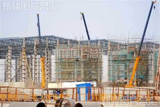 关键字:哈密市 煤化工项目 哈密高新技术产业开发区 循环经济产业园 工人 新疆中和合众新材料有限公司 羧酸 醋酐产品 一体化项目 建设现场 压缩机 厂房 安装 设备 施工