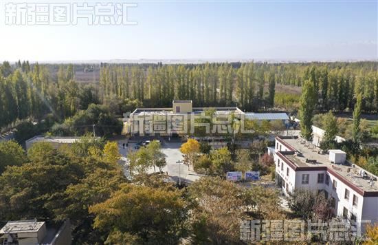 绿树环绕的策勒沙漠研究站(2023年10月30日无人机摄)。
