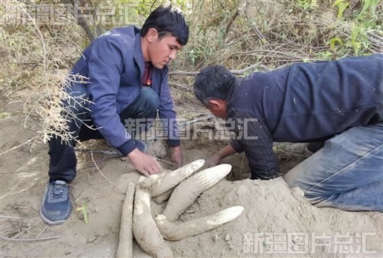 2023年10月30日,策勒县策勒乡托帕艾日克村村民在采挖大芸。大芸种植收入占该村村民总收入的40%。