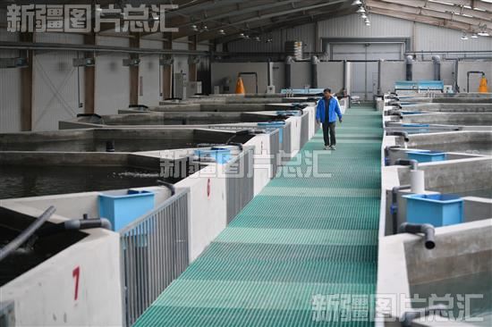 2023年10月30日,工作人员在乌鲁木齐高新区(新市区)六十户乡六十户村水循环养殖基地查看黄辣丁鱼生长情况。