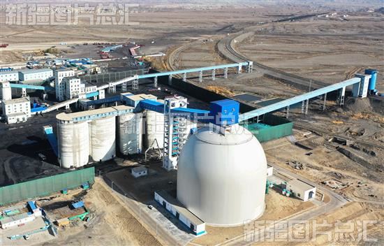 2023年10月31日,徐州矿务集团新疆天山矿业有限责任公司俄霍布拉克煤矿储煤场外景(无人机拍摄)。