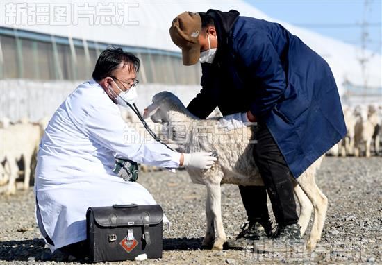 2023年11月2日,乌苏市塔布勒合特蒙古民族乡农业(畜牧)发展中心工作人员在养殖小区给羊看病。