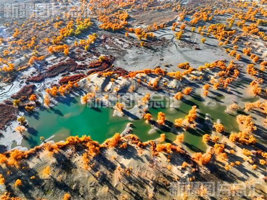 时下的罗布人村寨景区一片绚丽秋景,从高空俯瞰胡杨层林尽染,犹如一幅壮丽的画卷徐徐展开。罗布人村寨集合了沙漠、胡杨、河流、湖泊等自然景观,拥有独特的生态环境和美丽的自然风光。