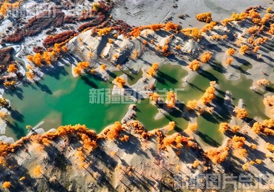 时下的罗布人村寨景区一片绚丽秋景,从高空俯瞰胡杨层林尽染,犹如一幅壮丽的画卷徐徐展开。罗布人村寨集合了沙漠、胡杨、河流、湖泊等自然景观,拥有独特的生态环境和美丽的自然风光。