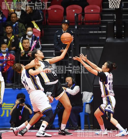 2023年11月6日,新疆女篮队员夹击防守对方外援。