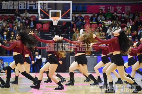 2023年11月6日,新疆女篮啦啦队员现场表演舞蹈。