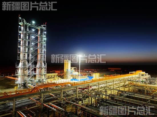 2023年11月4日,在沙雅县境内,崭新的富源联合站装置区夜景。