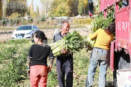 2023年11月3日,库车市乌恰镇蔬菜新村种植户在装运莴笋,准备销往乌鲁木齐市场。