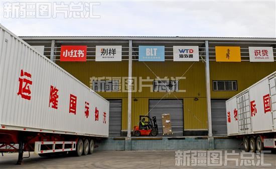 2023年11月5日,工作人员在阿拉山口市跨境电子商务综合试验区配送货物。
