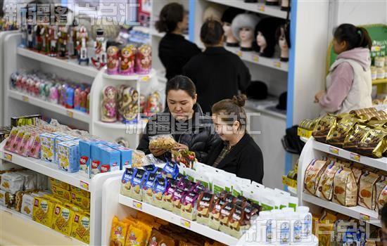 2023年11月4日,游客在阿拉山口边民互市二级市场展销中心购物。