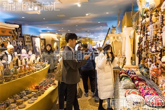 周末的新疆国际大巴扎景区游人如织,很多市民和游客前来品尝美食、休闲购物、观看演出,乐享美好周末。
