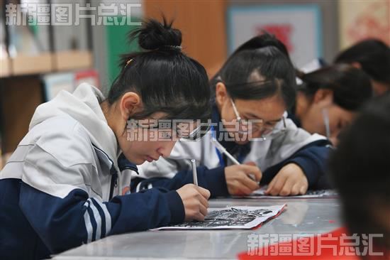 2023年11月7日,在阿克陶县雪松中学,“红杜鹃”绘画社团的学生在老师的指导下练习绘画。