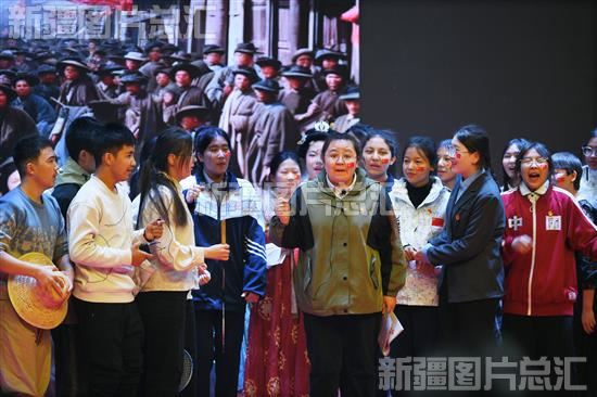 2023年11月7日,在阿克陶县雪松中学,“红杜鹃”曲艺社团的师生在表演红色经典。