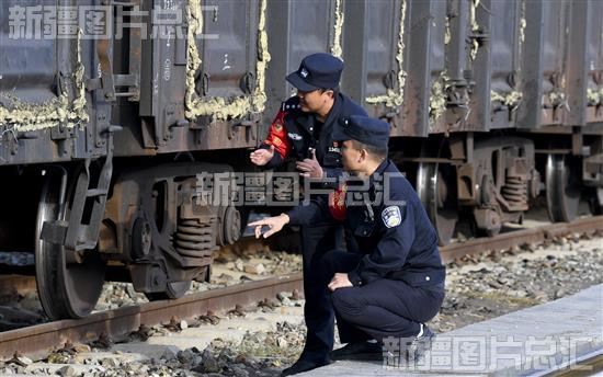 2023年11月9日,乌鲁木齐铁路公安局奎屯公安处霍尔果斯站派出所民警对中欧班列进行安全巡查。