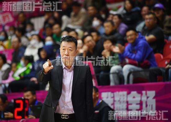 2023年11月12日晚,新疆天山女篮主教练贾楠在场边指挥。