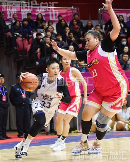 2023年11月12日晚,新疆天山女篮队员持球突破对方防守。