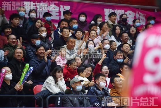 2023年11月12日晚,观众为新疆天山女篮队员加油。