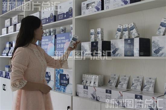 2023年11月11日,顾客在新疆天山托峰乳业有限公司样品展示室参观。