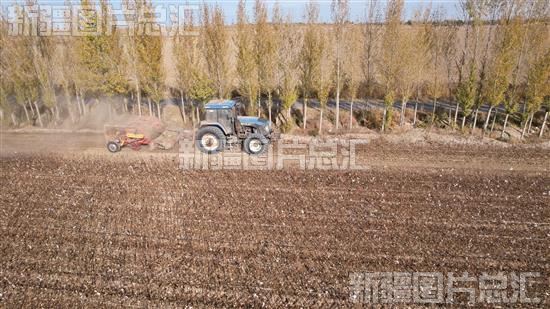 2023年11月11日,乌苏市百泉镇榆树村村民驾驶机械回收棉花地残膜。?