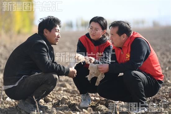 2023年11月11日,工作队队员向村民了解残膜回收情况。