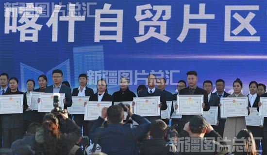 2023年11月11日,中国(新疆)自由贸易试验区喀什片区揭牌仪式现场,首批入驻自贸片区的经营主体获颁营业执照。