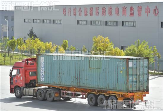 2023年11月11日,一辆满载货物的货车驶入喀什综合保税区。