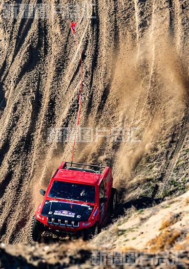 2023年11月11日,一辆专业组赛车在超级短道赛比赛中高速冲下沙梁。