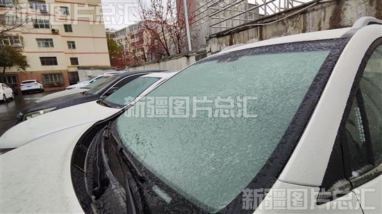 2023年11月11日,乌鲁木齐市北京南路一小区内,车辆玻璃上薄薄的霜冻。