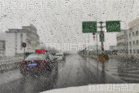 2023年11月11日,行驶在乌鲁木齐市阿勒泰路高架桥上的车辆,挡风玻璃上满是融化的水滴。