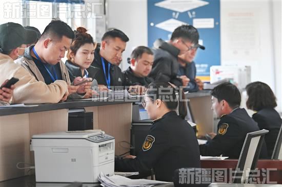 2023年11月9日,外贸企业工作人员在吐尔尕特口岸为车辆办理出境手续。
