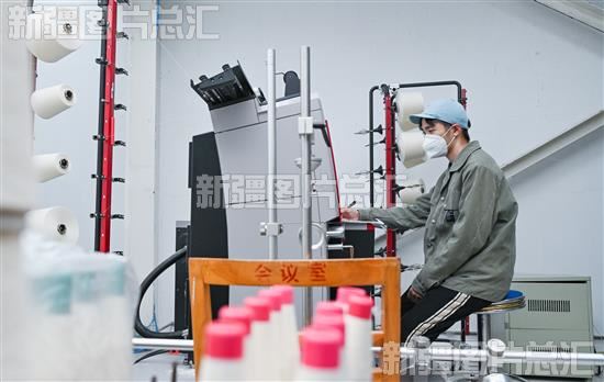 2023年11月9日,工人在位于昌吉市的昌吉溢达纺织有限公司实验室对成品纱进行质量检测。