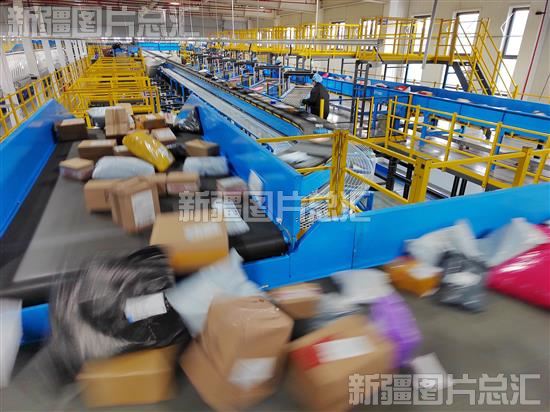 关键字:新疆 乌鲁木齐 高新区新市区 自由贸易试验区 中通快递 科技 新疆智能科技电商快递产业园 智能分拣 流水线 分拣 快件 物流 快递 产业园