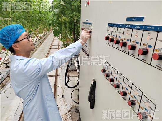 2023年11月13日,工作人员在位于乌鲁木齐高新技术产业开发区(新市区)的新疆高新植物工厂科技开发股份有限公司智能温室查看设备运行情况。