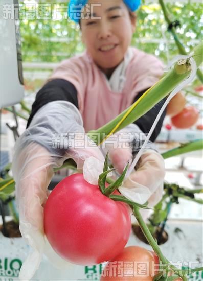 2023年11月13日,工作人员在位于乌鲁木齐高新技术产业开发区(新市区)的新疆高新植物工厂科技开发股份有限公司智能温室里采摘普罗旺斯雪山果番茄。