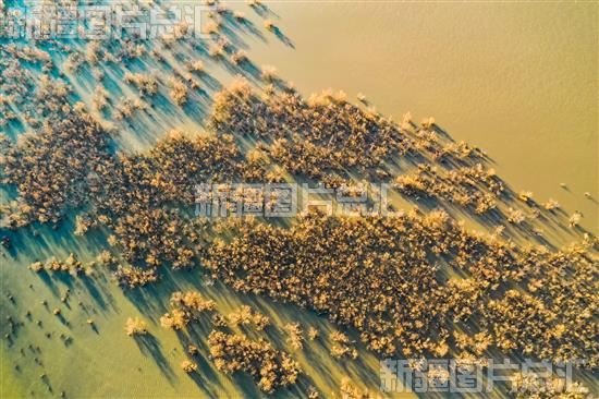 俯瞰呼图壁县小海子湿地,芦苇、红柳等各类植被披上“金装”,水鸟觅食嬉戏,一幅生态美景映入眼帘,美不胜收(2023年11月15日无人机摄)。