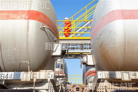 2023年11月6日,中国石油新疆油田分公司王家沟油气储运中心,员工在火车站台进行巡检。