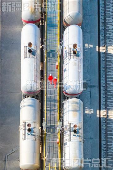 2023年11月6日,中国石油新疆油田分公司王家沟油气储运中心,员工在成品油运输火车站台进行巡检。