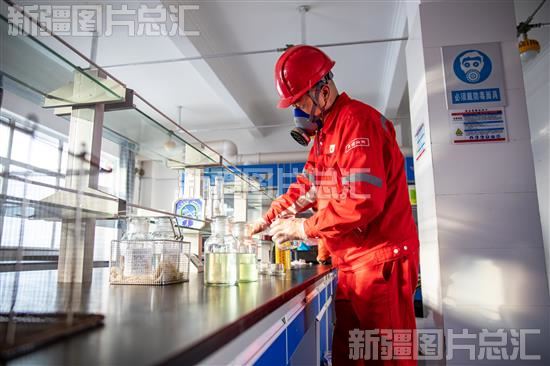 2023年11月12日,工作人员在位于乌鲁木齐经济技术开发区(头屯河区)的中国石油新疆油田分公司王家沟油气储运中心化验室检验油品。