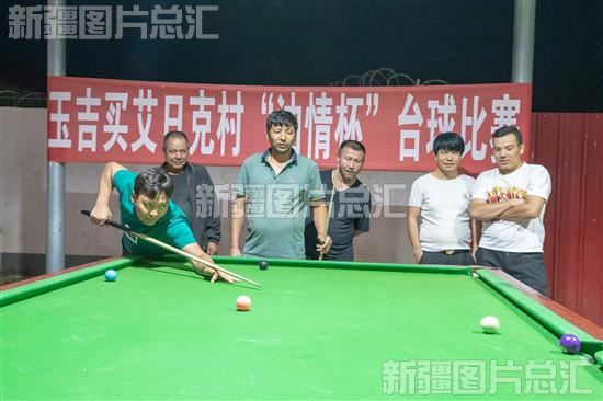 2023年9月7日,在泽普县波斯喀木乡玉吉买艾日克村油情巴扎,村民参加由“油情杯”台球比赛。