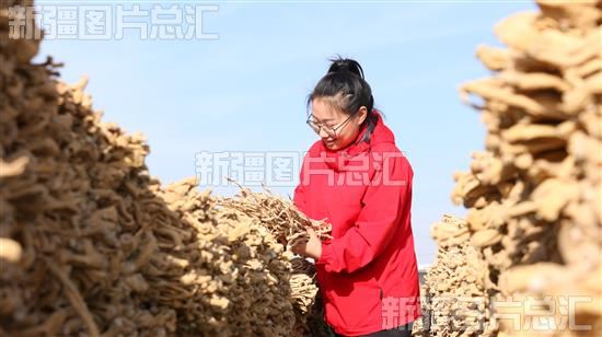 2023年11月2日,库车市阿拉哈格镇奥依托格拉克村驻村干部在查看韩白龙萝卜晾晒情况。