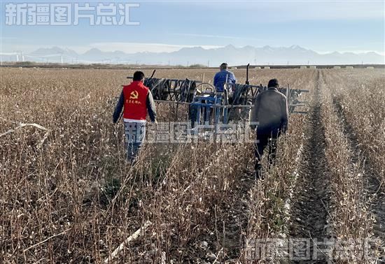2023年11月5日,驻村工作队队员指导村民回收废旧滴灌带。
