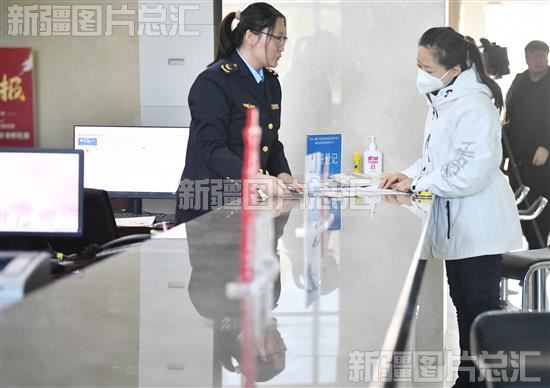 2023年11月15日,乌鲁木齐高新技术产业开发区(新市区)政务服务中心园区分中心工作人员为商家办理营业执照。