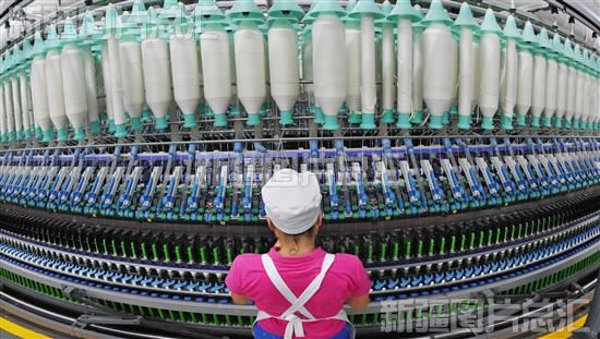 2023年11月10日,工人在位于克孜勒苏柯尔克孜自治州江苏产业园的克州润华纺织科技有限公司生产车间作业。该公司是一家集纺纱、织布及高端纺织品研发生产于一体的大型纺织企业,公司整体规模为年产纱线30万锭。